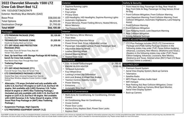 KEMNA CERTIFIED ADVATAGE INCLUDES* 1 Year EG Repel Paint Protector* 1 Year EG Repel Interior Protector* 1 Year Collision Deductable* 1 Year Key Fob Replacement*6 Month/ 6,000 Mile Premier Limited Warranty* 6 Month/ 6,000 Mile Limited Warranty* Compimentary Rental Vehicles* 6 Months Free Car Wash* 15% OFF Auto Spa purchase* 10% OFF all accessoriesThis 2022 Chevrolet Silverado 1500 LTZ is a true workhorse, packed with the features and capabilities you need to tackle any job or adventure. With its powerful 3.0L I6 Duramax Diesel engine, 4-wheel drive, and impressive towing capacity, this truck is ready to take on the toughest tasks.- CARBRAVO CERTIFIED- FULLY SERVICED AND DETAILED- LOCAL TRADE IN- TOWING PACKAGE- TECHNOLOGY PACKAGE- ENGINE BLOCK HEATER- LTZ PREMIUM PACKAGE- Z71 OFF-ROAD AND PROTECTION PACKAGE- PREMIUM BOSE 7-SPEAKER SOUND SYSTEM- ADAPTIVE CRUISE CONTROL- UNIVERSAL HOME REMOTE- OFF-ROAD SUSPENSION- POWER TILT & TELESCOPING STEERING COLUMN- FULLY AUTOMATIC HEADLIGHTS- HEAVY-DUTY AIR FILTER- CHEVYTEC SPRAY-ON BLACK BEDLINER- DUAL EXHAUST W/POLISHED OUTLETS- 15 DIAGONAL MULTICOLOR HEAD-UP DISPLAYBut this Silverado is more than just a workhorse - it's also packed with premium features that will make your driving experience truly exceptional. The LTZ trim level adds luxurious touches like heated and ventilated front seats, a power sunroof, and a premium Bose audio system. The advanced technology package includes a head-up display, wireless charging, and a surround-view camera system to make parking and maneuvering a breeze.Whether you're hauling a heavy load or just enjoying a leisurely drive, this Silverado LTZ is up to the task. Its off-road-ready suspension and skid plates provide the confidence to tackle any terrain, while the integrated trailer brake controller and hitch guidance system make towing a breeze. And with its impressive fuel efficiency, you'll save at the pump without sacrificing power.We're confident that this 2022 Chevrolet Silverado 1500 LTZ is the perfect truck for you. With its unbeatable combination of capability, technology, and comfort, it's ready to take on whatever challenges come your way. Visit our showroom today to experience it for yourself and see how it can transform the way you work and play.