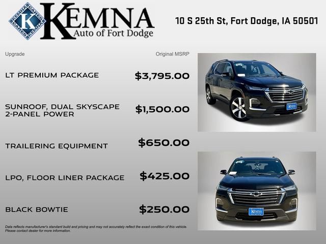 Designed to accommodate your active lifestyle, the Traverse LT Leather offers ample cargo space and versatile seating configurations. The power liftgate and integrated cargo liner make loading and unloading a breeze, while the heavy-duty cooling system and trailering equipment ensure you're ready for your next adventure.