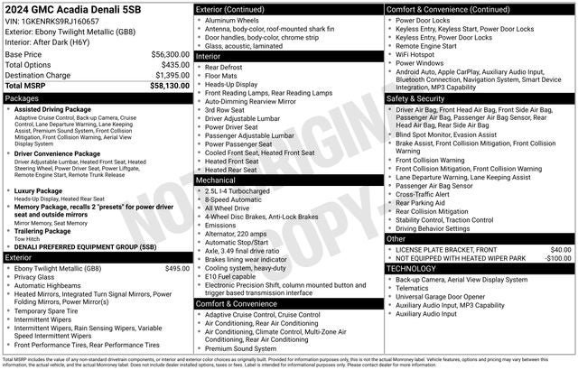 Don't miss the opportunity to experience the exceptional quality and value of this 2024 GMC Acadia Denali. Visit our showroom today and let us demonstrate how this remarkable SUV can elevate your driving experience.